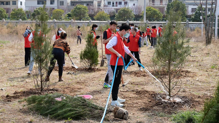 春到人間草木知,正值一年添綠時。在第44個全民義務(wù)植樹節(jié)來臨之際,我校黨員干部師生廣泛參與義務(wù)植樹活動。3月11日下午,校領(lǐng)導(dǎo)范新會、彭虎軍、劉勇、劉寶盈、王新軍、郭瑾與青年志愿者們一起來到丹江校區(qū),為校園再添綠裝。黨委辦公室、發(fā)展規(guī)劃處、后勤保障處、丹江校區(qū)管理處等部門職工和團(tuán)委青年志愿者協(xié)會近百名師生參加活動。