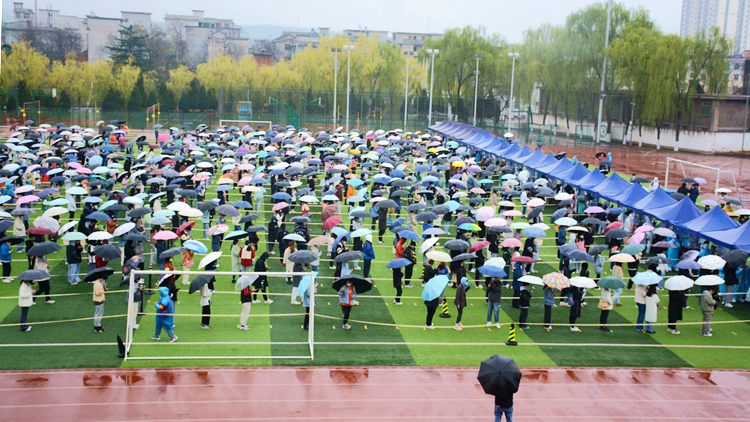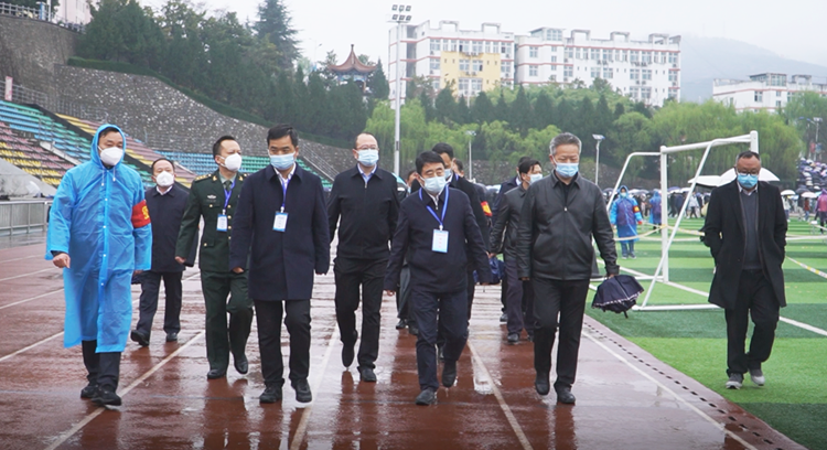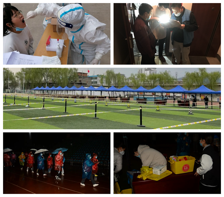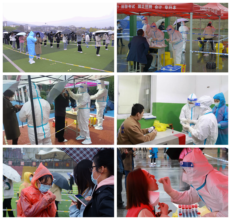 當(dāng)天清晨6時(shí)30分,參加全員核酸檢測的人員在細(xì)雨中有序入場。學(xué)校在北新街校區(qū)大、小體育場及南院家屬區(qū)設(shè)置28個(gè)采樣臺(tái),全體師生員工及臨聘人員,環(huán)衛(wèi)、食堂、超市、浴室、快遞、打印、理發(fā)等從業(yè)人員,在校居住的教職工家屬及離退休職工在志愿者的引導(dǎo)下依次掃碼登記,接受核酸檢測。全體人員嚴(yán)格保持“一米線”距離,現(xiàn)場秩序井然。部分留觀人員和在校隔離學(xué)生,由醫(yī)護(hù)人員上門進(jìn)行采樣工作。商洛市委副書記趙曉寧在張志昌等的陪同下來到我校大體育場,視察全員核酸檢測工作現(xiàn)場,并對我校工作給予高度評價(jià)。