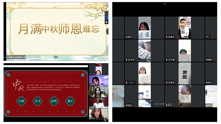 人文學(xué)院以“月滿中秋,難忘師恩”為主題舉辦線上活動(dòng)。師生共讀傳統(tǒng)古詩(shī)、分享家鄉(xiāng)中秋習(xí)俗,學(xué)生們通過(guò)“云端”向老師們送來(lái)熱情的祝福,表達(dá)了自己對(duì)大學(xué)生活的憧憬。