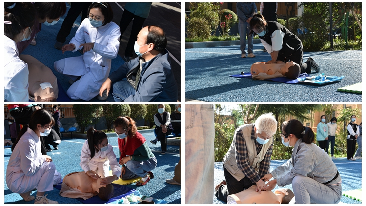 在中華民族傳統(tǒng)節(jié)日重陽(yáng)節(jié)到來(lái)之際,為深入營(yíng)造“敬老愛(ài)老”氛圍,幫助老同志及其家屬提高對(duì)突發(fā)意外狀況的急救應(yīng)對(duì)能力,9月29日,離退休職工工作處聯(lián)合健康管理學(xué)院深入南院家屬區(qū),為老教師、老同志開(kāi)展“醫(yī)學(xué)急救知識(shí)科普宣傳進(jìn)社區(qū)活動(dòng)講”活動(dòng)。離退休職工工作處、健康管理學(xué)院黨政主要負(fù)責(zé)人,護(hù)理學(xué)專業(yè)師生參加活動(dòng)。