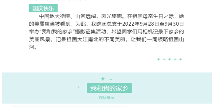 為深入開(kāi)展“青春獻(xiàn)禮黨的二十大,強(qiáng)國(guó)有我新征程”主題宣傳教育活動(dòng),熱烈慶祝中華人民共和國(guó)成立73周年,引導(dǎo)和激勵(lì)廣大師生厚植愛(ài)國(guó)主義情懷,營(yíng)造網(wǎng)絡(luò)文明新風(fēng),國(guó)慶節(jié)期間,我校組織開(kāi)展了豐富多彩的“喜迎黨的二十大 歡度國(guó)慶節(jié)”系列主題活動(dòng)。廣大師生通過(guò)各級(jí)各類(lèi)網(wǎng)絡(luò)平臺(tái)和線(xiàn)上活動(dòng),用自己的方式為祖國(guó)送上美好祝福,禮贊新時(shí)代奮進(jìn)征程,以良好的精神面貌和昂揚(yáng)姿態(tài)喜迎黨的二十大勝利召開(kāi)。