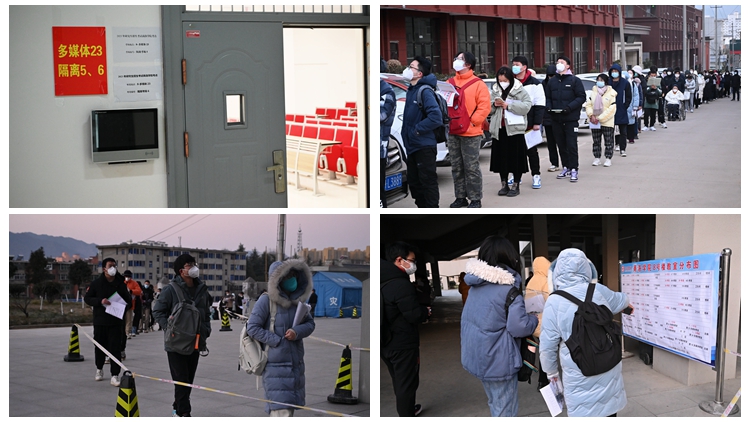 因疫情防控政策調(diào)整,加之研考當(dāng)日商洛市發(fā)出降雪預(yù)警,給本年度研考工作帶來了更大挑戰(zhàn)??荚嚬ぷ黝I(lǐng)導(dǎo)小組和相關(guān)職能部門靈活應(yīng)對,及時調(diào)整方案,加強考務(wù)力量。組織部、教工部面向全校發(fā)出號召,抽調(diào)教職工志愿者280名。教務(wù)處考前反復(fù)進行排查,分類制定考場安排,從校門口到考場全程設(shè)置沿途指示牌和引導(dǎo)員,對特殊考生全程提供一對一服務(wù)。為保障丹江校區(qū)考生在考試期間保持充足精力,學(xué)校安排大巴車閉環(huán)接送,并在北新街校區(qū)設(shè)置專屬休息區(qū)和自習(xí)室,幫助考生洗去“趕考”的疲憊。后勤保障處為考生提供全程醫(yī)療保障和午餐簡餐,在為每個考點設(shè)置多個熱水直飲水供應(yīng)點,定時做好區(qū)域保潔消殺工作,營造溫暖舒適的候考環(huán)境。保衛(wèi)處、信息化建設(shè)與管理處工作人員提前到崗,規(guī)范入場秩序,提供咨詢引導(dǎo)等溫情服務(wù)。全體考務(wù)工作人員頂著疫情和風(fēng)雪堅守每一道防線,為廣大考生保駕護航,確保實現(xiàn)“平安研考”的工作目標(biāo)。