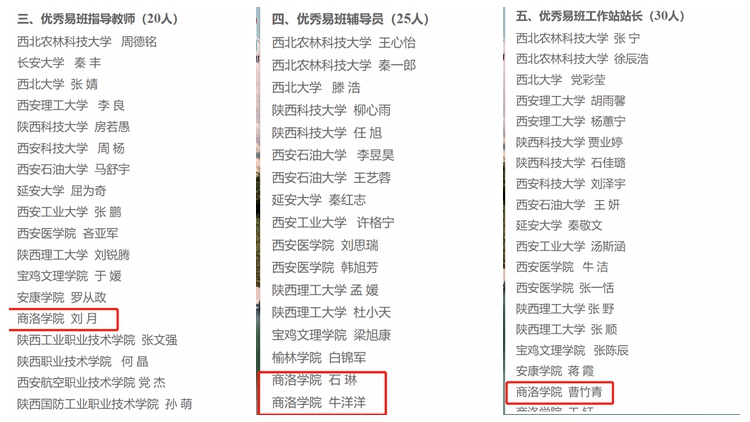 近日,陜西省高校易班發(fā)展中心發(fā)布了《關(guān)于2022年度陜西高校易班共建工作評優(yōu)結(jié)果的通報》。我校被評為2022年度“優(yōu)秀易班共建高校”,學(xué)工部教師劉月被評為“優(yōu)秀易班指導(dǎo)老師”,經(jīng)管學(xué)院教師石琳、數(shù)計學(xué)院教師牛洋洋被評為“優(yōu)秀易班輔導(dǎo)員”,易班學(xué)生站長曹竹青、人文學(xué)院易班分站站長王鈺被評為“優(yōu)秀易班工作站站長”。劉月撰寫的《易班支持下的‘15213’心理健康教育模式探索與實踐》榮獲“優(yōu)秀易班共建案例”。我校實現(xiàn)2022年陜西高校易班共建評優(yōu)獲獎“大滿貫”。