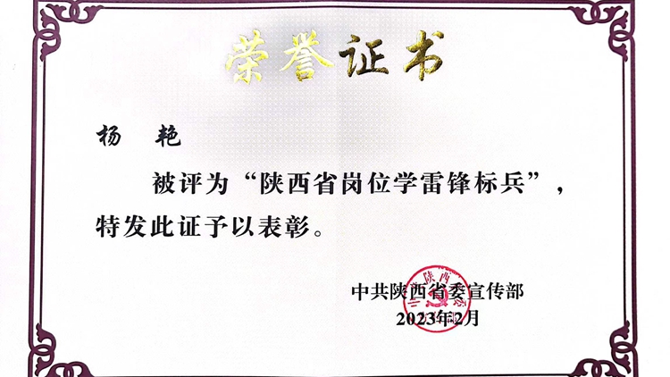 我校教師楊艷榮獲“2022年度陜西省崗位學(xué)雷鋒標(biāo)兵”榮譽稱號