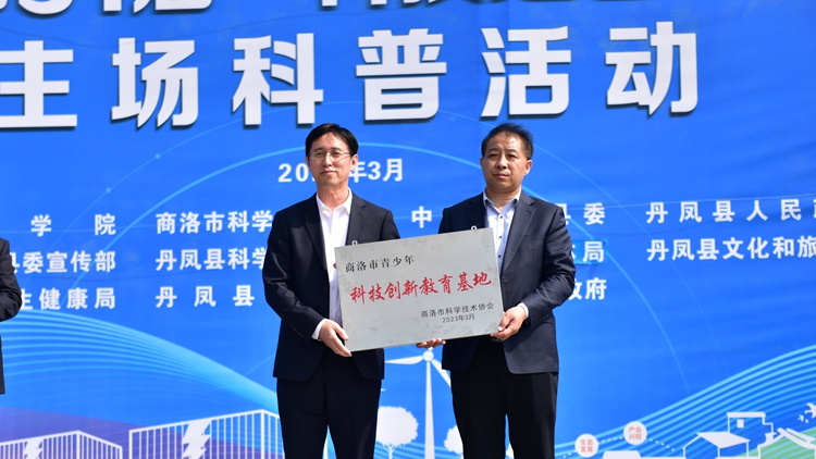 啟動(dòng)儀式上,孫舉恒為我?!吧搪迨星嗌倌昕萍紕?chuàng)新教育基地”授牌,王新軍代表學(xué)校接牌。與會(huì)領(lǐng)導(dǎo)分別為丹鳳縣天麻與食用菌、葡萄酒、中藥材與核桃、畜禽養(yǎng)殖四個(gè)科技志愿服務(wù)隊(duì)授旗,并對(duì)該縣科普工作先進(jìn)集體、先進(jìn)個(gè)人、優(yōu)秀科技工作者,以及最美科普志愿者進(jìn)行表彰。