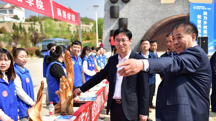 4月1日,以“凝聚科技力量,助力鄉(xiāng)村振興”為主題的商洛市第三十一屆“科技之春”宣傳月暨商洛學(xué)院“雙百工程”啟動(dòng)儀式主場(chǎng)示范活動(dòng)在丹鳳縣棣花鎮(zhèn)舉辦。商洛市委常委、副市長(zhǎng)孫舉恒,我校副校長(zhǎng)王新軍,商洛市科協(xié)主席黃恒林,丹鳳縣委副書(shū)記王小寧出席活動(dòng)。我??萍继?、藝術(shù)學(xué)院相關(guān)負(fù)責(zé)人,45名志愿者、丹鳳縣25家成員單位以及500余名群眾參加活動(dòng)。