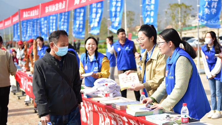 我校健康管理學(xué)院、生物學(xué)院的師生以“情景劇+講解”的形式,為現(xiàn)場(chǎng)群眾開(kāi)展心肺復(fù)蘇訓(xùn)練、農(nóng)作物栽培、中草藥種植、健康膳食、老年護(hù)理等方面的科普宣傳活動(dòng)。來(lái)自藝術(shù)學(xué)院的師生聲情并茂地表演了花鼓戲、笛子演奏、歌伴舞等文藝節(jié)目,飽含商洛文化元素,同時(shí)展出的根雕藝術(shù)作品也為群眾帶來(lái)美的享受。通過(guò)現(xiàn)場(chǎng)發(fā)放800余份宣傳資料、開(kāi)展有獎(jiǎng)科學(xué)知識(shí)問(wèn)答等宣傳形式,讓參與群眾在笑聲中感受商洛文化、學(xué)習(xí)科學(xué)知識(shí),進(jìn)一步激發(fā)了大家熱愛(ài)祖國(guó)、熱愛(ài)家鄉(xiāng)、崇尚科學(xué)的熱情。