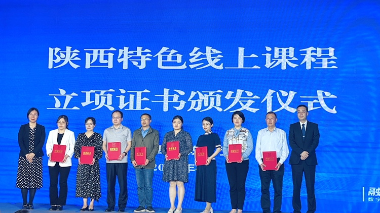 在高等教育分會(huì)場舉行的陜西省特色線上課程頒獎(jiǎng)活動(dòng)中,我校教師孫李麗、孫雪娥、廉潔、馮淵申報(bào)的《商洛花鼓戲翻譯與實(shí)踐》課程獲準(zhǔn)立項(xiàng),課程負(fù)責(zé)人孫李麗現(xiàn)場領(lǐng)獎(jiǎng)。