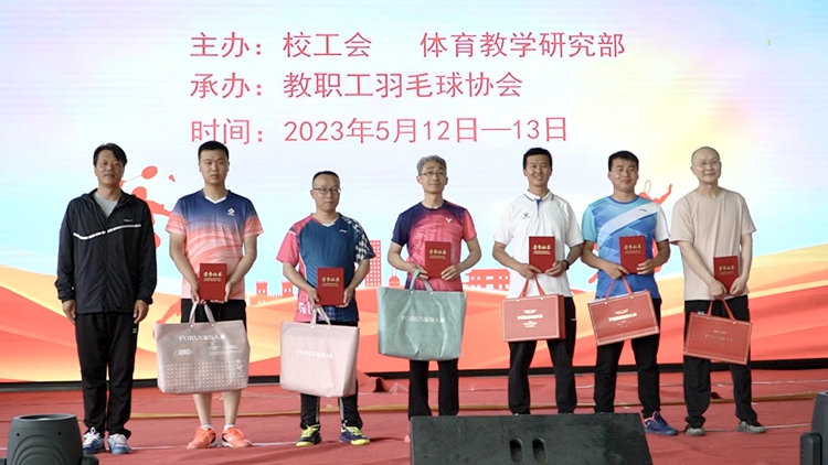 工會(huì)、體育教學(xué)研究部負(fù)責(zé)人分別為獲獎(jiǎng)教職工頒發(fā)榮譽(yù)證書(shū)和獎(jiǎng)品。