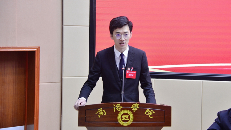 王新軍對與會代表及廣大青年學子提出了三點要求,一是要堅定理想信念,筑牢思想之基。 要以習近平新時代中國特色社會主義思想為指導,認真學習黨的二十大精神,將思想統(tǒng)一到黨中央的決策部署中來,將個人小我融入到祖國的大我、人民的大我之中,做新時代積極向上、立志成才、奮發(fā)有為的商院學子。二是要勤奮刻苦學習,勇于求知進步。要按照習近平總書記提出的“勤學、修德、明辨、篤實”的要求,秉承“博聞強志、正道直行”的校訓精神,用真才實學擦亮青春的底色。三是要認真履職,做躬身篤行的服務者。全校各級學生會要著力加強思想政治建設,堅持服務導向,幫助同學解決日常學習和生活中最關(guān)心、最直接、最現(xiàn)實的問題。各位代表要準確及時有效地表達同學們的心聲,做稱職合格的代言人。學校各級黨組織和相關(guān)部門要高度重視、關(guān)心支持學生會的建設發(fā)展,切實提升我校各級學生會的工作實效。