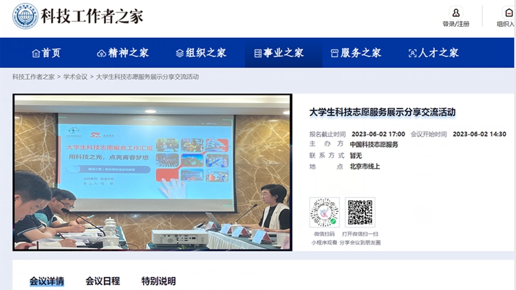 為充分展示大學(xué)生科技志愿服務(wù)工作典型成效經(jīng)驗(yàn),推動(dòng)相關(guān)工作高質(zhì)量發(fā)展,6月2日,由中國(guó)科學(xué)技術(shù)協(xié)會(huì)主辦的全國(guó)大學(xué)生科技志愿服務(wù)交流展示活動(dòng)在北京舉行。中國(guó)科學(xué)技術(shù)協(xié)會(huì)宣傳文化部部長(zhǎng)郭哲、北京師范大學(xué)民生保障研究中心主任謝瓊、全國(guó)學(xué)校共青團(tuán)研究中心常務(wù)副主任秦濤出席活動(dòng)并講話?;顒?dòng)分線下交流、線上展示兩個(gè)階段進(jìn)行,我校與北京航空航天大學(xué)、哈爾濱工程大學(xué)等6所高校受邀作現(xiàn)場(chǎng)展示交流,800余所高校線上收看直播。