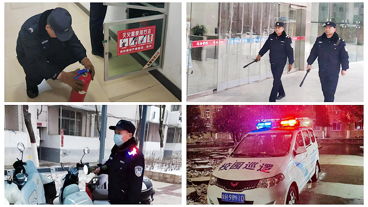 保衛(wèi)處:寒假期間,當(dāng)廣大師生和家人歡聚休息時(shí),新春佳節(jié),當(dāng)千家萬(wàn)戶共享團(tuán)圓時(shí),為確保校園安全,全體保衛(wèi)干部職工和校衛(wèi)隊(duì)員毅然舍小家,顧大家,堅(jiān)守在各自工作崗位上,不懼風(fēng)雪,不畏嚴(yán)寒,以“時(shí)時(shí)放心不下”的情懷全力做好安全保衛(wèi)工作,確保校園安全穩(wěn)定,實(shí)現(xiàn)了“零發(fā)案”的目標(biāo),有效保障了全校師生度過(guò)了一個(gè)平安祥和的春節(jié)和假期。放假前,保衛(wèi)處專門(mén)下發(fā)通知,對(duì)學(xué)校寒假和春節(jié)期間安全保衛(wèi)工作進(jìn)行周密安排,要求校內(nèi)各單位認(rèn)真開(kāi)展安全教育和安全檢查,切實(shí)落實(shí)各級(jí)安全責(zé)任,排除各種安全隱患,加強(qiáng)留校師生的安全管理,嚴(yán)格執(zhí)行帶班值班備勤制度,加強(qiáng)值班和信息報(bào)送,保證假期各項(xiàng)安保工作不間斷。假期當(dāng)中,保衛(wèi)處堅(jiān)持“預(yù)防為主,安全第一”原則,扎實(shí)開(kāi)展校園及周邊安全檢查巡查,組織專人對(duì)各個(gè)重點(diǎn)區(qū)域開(kāi)展安全隱患排查和執(zhí)勤守護(hù),按照“誰(shuí)主管,誰(shuí)負(fù)責(zé)”的原則督促相關(guān)單位及時(shí)整改存在問(wèn)題,落實(shí)安全防范措施,嚴(yán)防各自工作區(qū)域、業(yè)務(wù)領(lǐng)域發(fā)生安全事故。保衛(wèi)處各警區(qū)和“校園110”堅(jiān)持24小時(shí)值班,隨時(shí)處置各類突發(fā)事件,監(jiān)控室對(duì)校園重點(diǎn)區(qū)域?qū)崟r(shí)進(jìn)行監(jiān)控,校衛(wèi)隊(duì)加強(qiáng)校門(mén)管控,各警區(qū)加大對(duì)校園的巡邏力度,寒假和春節(jié)期間校園安全穩(wěn)定和諧有序。