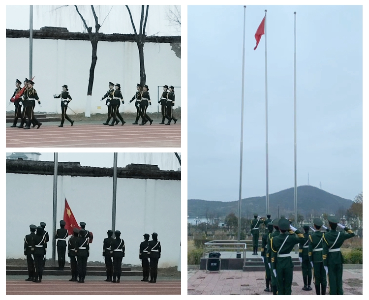 參加升旗儀式的師生列隊(duì)整齊、精神飽滿地佇立在升旗臺前。在全體師生的注目下,國旗護(hù)衛(wèi)隊(duì)邁著鏗鏘有力的步伐護(hù)送國旗至升旗臺。7點(diǎn)10分,在雄壯的國歌聲中,鮮艷的五星紅旗在兩個校區(qū)冉冉升起、迎風(fēng)飄揚(yáng)。全體師生神情肅穆,齊唱國歌,向莊嚴(yán)的國旗表達(dá)最崇高的敬意。