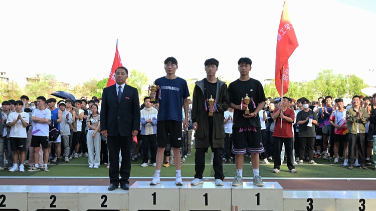 在熱烈的掌聲中,劉勇、王浩分別為獲得體育道德風(fēng)尚獎(jiǎng)和教工組團(tuán)體總分前三名的學(xué)院頒獎(jiǎng),劉寶盈、王新軍、郭瑾分別為獲得團(tuán)體總分、男子團(tuán)體總分、女子團(tuán)體總分前三名的學(xué)院頒獎(jiǎng)。