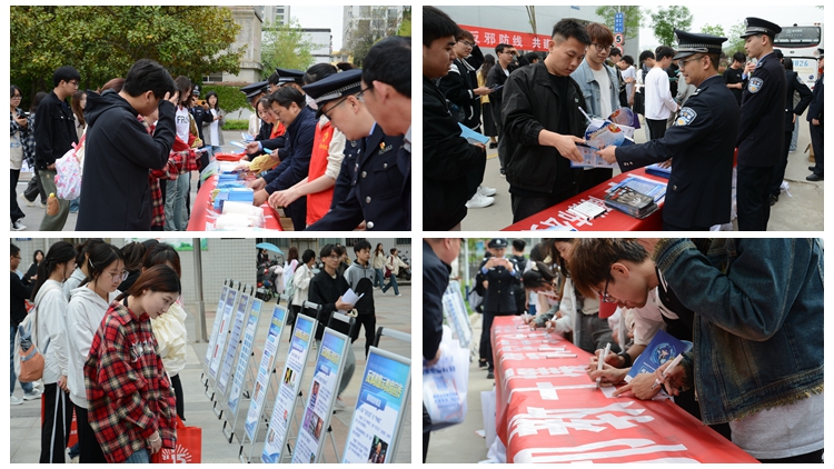 在活動現(xiàn)場,工作人員向師生介紹了在線上參與“對邪教說不”簽名和反邪教知識答題等活動的方式和步驟,并為現(xiàn)場師生發(fā)放國家反邪教手冊、活動彩頁、宣傳袋等宣傳資料2500余份。參與活動的師生認真觀看了反邪教宣傳展板,并在橫幅上鄭重地簽下個人姓名,以表達抵制邪教的決心。