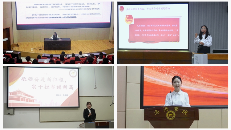 在團員青年主題宣講環(huán)節(jié),校團委紅色號角宣講團成員白易媛、張雨欣、楊婷、特暢以《砥礪奮進新征程實干擔當譜新篇》《學思踐悟新思想篤行實干向未來》《生而逢盛世青年當有為》《讓學雷鋒在新時代大學生中蔚然成風》為題,著眼于優(yōu)秀校友、身邊典型,號召廣大青年堅定理想信念,聽黨話、跟黨走,爭做有理想、能吃苦、敢擔當、肯奮斗的新時代好青年。