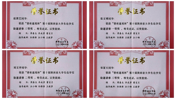 近日,由陜西省化學(xué)會和陜西省高等學(xué)?;瘜W(xué)實(shí)驗(yàn)中心聯(lián)席會主辦、陜西理工大學(xué)承辦的第十屆陜西省大學(xué)生化學(xué)實(shí)驗(yàn)邀請賽在陜西理工大學(xué)舉行。經(jīng)過激烈角逐,我?;膶W(xué)院學(xué)生張文博獲一等獎,劉文亭獲二等獎,宋夏天、趙茜藝獲三等獎,我校代表隊(duì)榮獲優(yōu)秀團(tuán)隊(duì)獎。