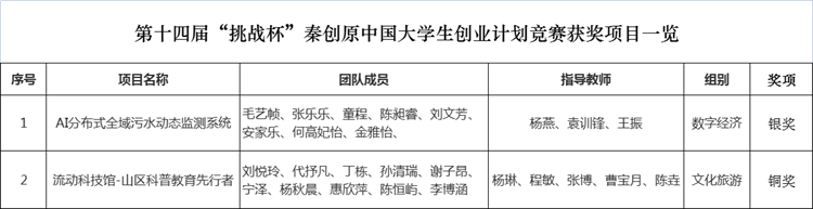 本屆競賽由共青團中央、教育部、人力資源和社會保障部、中國科協(xié)、全國學(xué)聯(lián)、陜西省人民政府聯(lián)合主辦,西安交通大學(xué)、共青團陜西省委承辦,設(shè)置主體賽及“一帶一路”國際邀請賽、“秦創(chuàng)原”創(chuàng)新挑戰(zhàn)賽2項配套交流活動。此次競賽共吸引來自2700余所高校的300多萬名學(xué)生參與,累計提交39萬余個創(chuàng)新創(chuàng)業(yè)項目。經(jīng)過各學(xué)校初賽、各省復(fù)賽,共有412所國內(nèi)高校、14所國際高校的839個項目進入全國決賽終評,最終在“秦創(chuàng)原”創(chuàng)新挑戰(zhàn)賽中,我校推薦的項目《AI分布式全域污水動態(tài)監(jiān)測系統(tǒng)》獲銀獎、《流動科技館-山區(qū)科普教育先行者》獲銅獎。