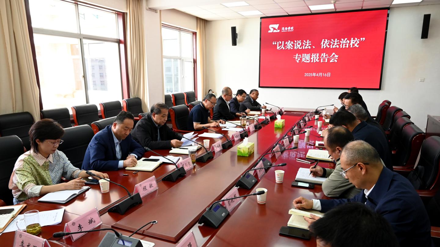 4月16日,學(xué)校召開“以案說法、依法治?!狈ㄖ螌n}報(bào)告會。學(xué)校特聘法律顧問、天乾律師事務(wù)所陳波律師為各部門負(fù)責(zé)人作依法治校專題報(bào)告。報(bào)告會由校黨委副書記劉寶盈主持。副校長王新軍、郭瑾、張向東出席報(bào)告會。