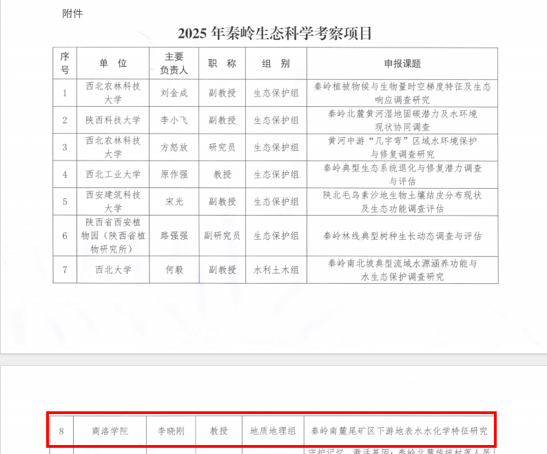 6月27日,由共青團(tuán)陜西省委、省發(fā)展改革委、省林業(yè)局共同主辦的“美麗中國·青春行動(dòng)”——2025年陜西共青團(tuán)助力秦嶺生態(tài)環(huán)境保護(hù)青年志愿聯(lián)合行動(dòng)主場(chǎng)活動(dòng)在西安市鄠邑區(qū)秦嶺保護(hù)總站舉行,會(huì)上宣布了2025年秦嶺生態(tài)科學(xué)考察項(xiàng)目立項(xiàng)名單,我校建工學(xué)院、秦嶺南麓生態(tài)水文陜西省野外科學(xué)研究站李曉剛博士主持申報(bào)的《秦嶺南麓尾礦庫下游地表水水化學(xué)特征研究》獲批立項(xiàng),李曉剛和我校青年志愿者代表現(xiàn)場(chǎng)接受了團(tuán)省委秦嶺生態(tài)科學(xué)考察隊(duì)授旗。