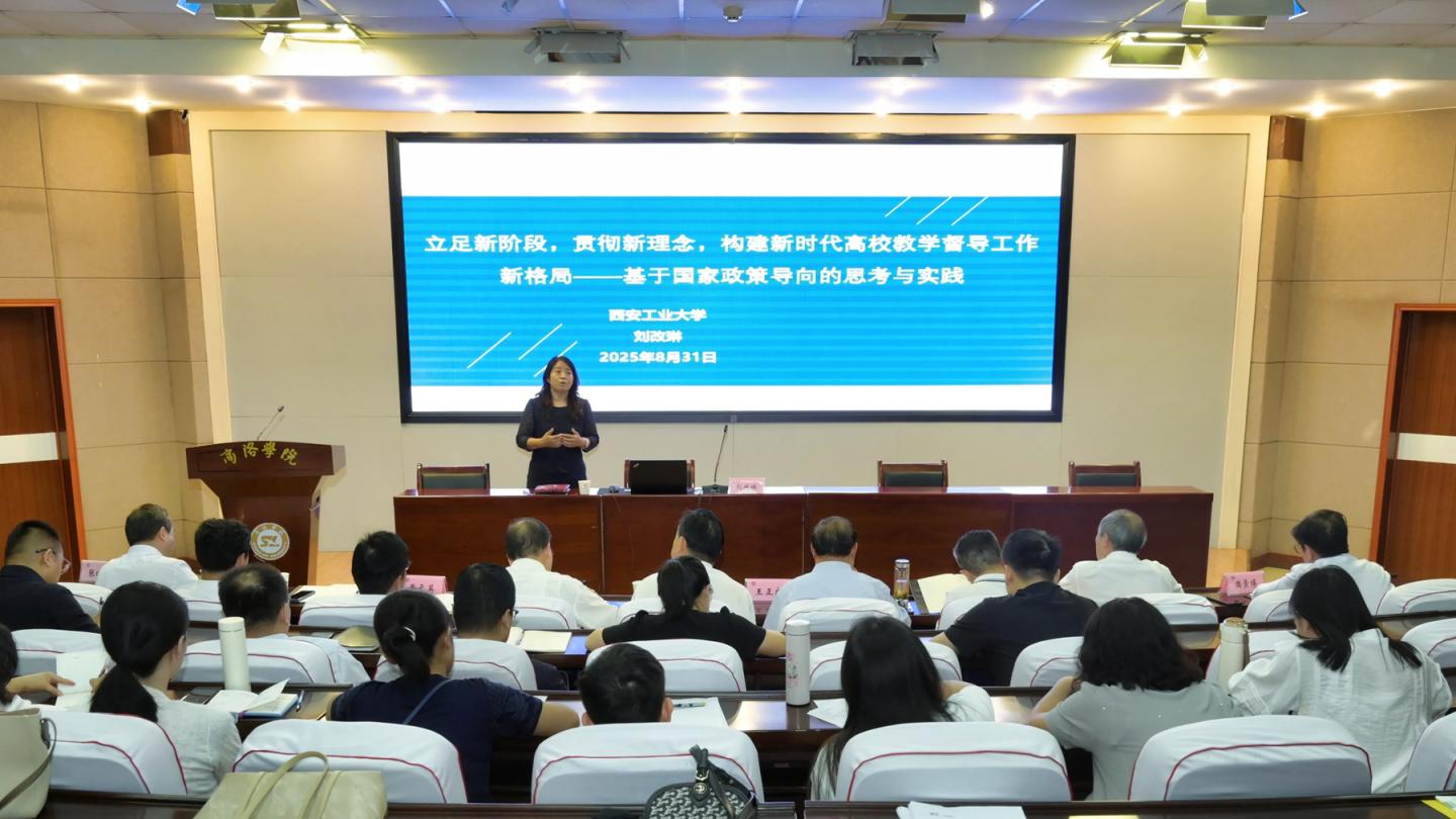 8月31日,我校召開(kāi)教學(xué)督導(dǎo)專家聘任儀式暨工作培訓(xùn)會(huì)。校長(zhǎng)權(quán)雅寧出席會(huì)議并為王正良等9名新一任教學(xué)督導(dǎo)專家頒發(fā)聘任證書。西安工業(yè)大學(xué)督導(dǎo)團(tuán)團(tuán)長(zhǎng)劉改琳教授受邀為我校教學(xué)督導(dǎo)團(tuán)作專題培訓(xùn)報(bào)告。會(huì)議由副校長(zhǎng)張向東主持。