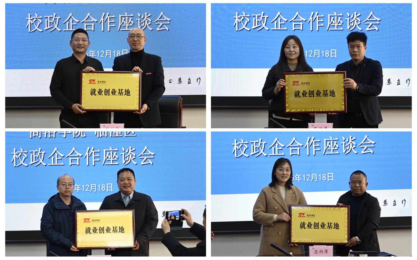 在與會(huì)人員見(jiàn)證下,王新軍為企業(yè)代表頒發(fā)了“就業(yè)創(chuàng)業(yè)導(dǎo)師”聘書。馬克思主義學(xué)院、人文學(xué)院、建工學(xué)院、健康學(xué)院分別與四家臨潼區(qū)企業(yè)簽署了就業(yè)創(chuàng)業(yè)基地協(xié)議并授牌。企業(yè)代表與我校相關(guān)二級(jí)學(xué)院負(fù)責(zé)人圍繞學(xué)生實(shí)習(xí)實(shí)踐、課程共建等內(nèi)容進(jìn)行了深入交流。
