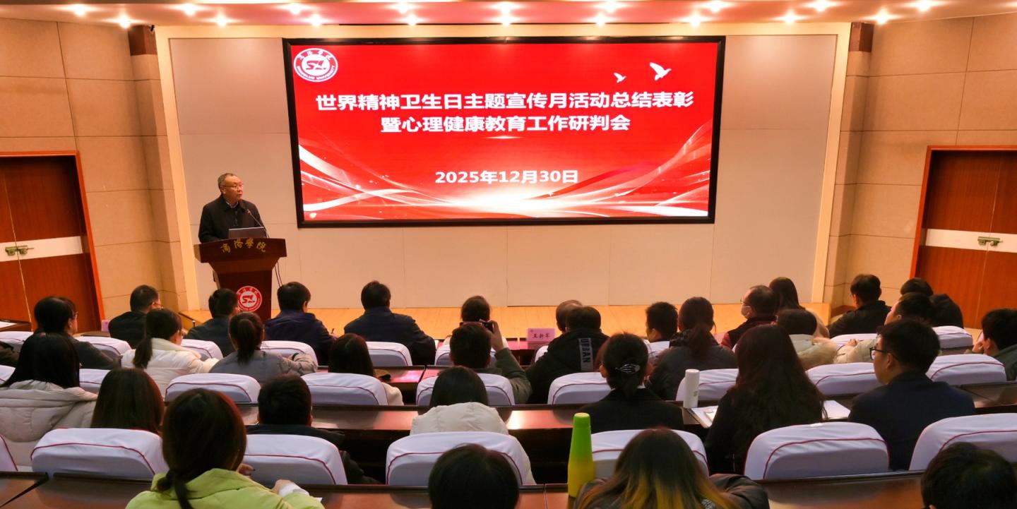 12月30日,我校召開2025年世界精神衛(wèi)生日主題宣傳月活動(dòng)總結(jié)表彰暨心理健康教育工作研判會(huì)。校黨委副書記王新軍出席會(huì)議,商洛市精神衛(wèi)生防治技術(shù)辦公室主任趙莉受邀參會(huì)。各二級(jí)學(xué)院黨委書記、副書記、學(xué)工辦主任、輔導(dǎo)員代表,心理健康教育中心專兼職教師及班級(jí)心理委員代表等120余人參加會(huì)議。會(huì)議由學(xué)生處處長(zhǎng)李彥廣主持。