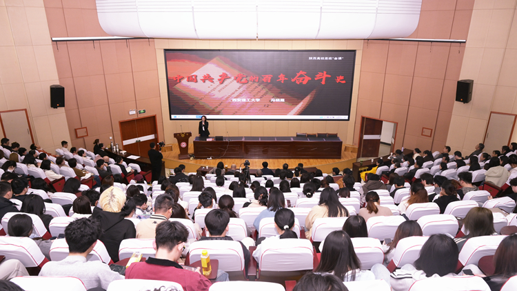 為深入學(xué)習(xí)貫徹習(xí)近平總書記關(guān)于學(xué)校思政課建設(shè)的重要講話和重要指示精神,全面落實立德樹人根本任務(wù),3月27日,陜西高校思政“金課”巡講報告會在商洛學(xué)院舉行。陜西省高校思政“金課”巡講團(tuán)成員、西安理工大學(xué)副教授馮曉霞應(yīng)邀到校,以《中國共產(chǎn)黨的百年奮斗史》為題作專題報告。本次報告會采用線上線下同步形式開展,榆林學(xué)院、安康學(xué)院、榆林職業(yè)技術(shù)學(xué)院、安康職業(yè)技術(shù)學(xué)院、商洛職業(yè)技術(shù)學(xué)院師生代表,商洛學(xué)院黨委宣傳部、學(xué)工部、教務(wù)處、校團(tuán)委、馬克思主義學(xué)院主要負(fù)責(zé)人及全校思政課教師、學(xué)生代表共同聆聽報告。