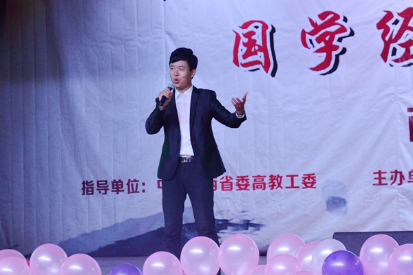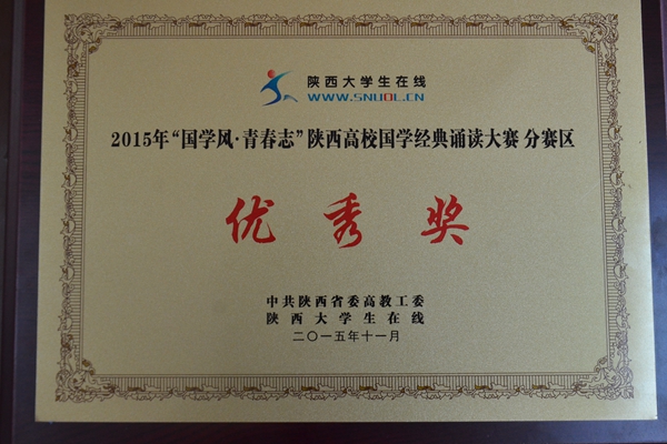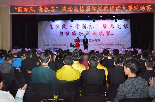 10月30日,我校師生代表參加了由陜西省委高教工委陜西大學(xué)生在線主辦的“國(guó)學(xué)風(fēng)·青春志”國(guó)學(xué)經(jīng)典誦讀賽,比賽在西安培華學(xué)院、陜西工業(yè)職業(yè)技術(shù)學(xué)院同時(shí)舉辦。全省共有16所高校33支隊(duì)伍參賽。由我校藝術(shù)學(xué)院王聰同學(xué)朗誦的《將進(jìn)酒》獲得“國(guó)學(xué)風(fēng).青春志”陜西高校經(jīng)典誦讀大賽分賽區(qū)優(yōu)秀獎(jiǎng)。