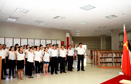 在鮮艷的黨旗下,全體黨員莊嚴(yán)地重溫了入黨誓詞。