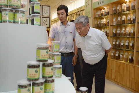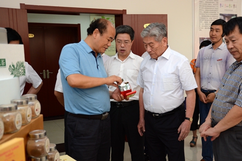在植物學優(yōu)勢學科展室,趙鵬大院士詳細了解了我校培育的小麥新品種和現(xiàn)代中藥產(chǎn)品,品嘗了我校開發(fā)的“商山養(yǎng)生紅”保健酒。他建議我校深入研究整理商洛區(qū)域土壤水質特性,有針對性地研發(fā)具有地域特色的良種和農(nóng)藥、肥料等產(chǎn)品。
