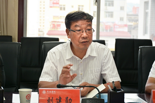 劉建林代表學(xué)校對(duì)劉建勛一行來(lái)??疾旖涣鞅硎練g迎,并向客人們介紹了我校的歷史沿革、辦學(xué)定位與辦學(xué)方向、辦學(xué)格局與學(xué)科專業(yè)、辦學(xué)特色與服務(wù)地方成就和師資隊(duì)伍建設(shè)情況。劉建林表示,我校四十年勵(lì)精圖治,升本十年風(fēng)雨兼程,近年來(lái)厚積薄發(fā),當(dāng)前,學(xué)校面臨著全面實(shí)施本科教育,構(gòu)建“穩(wěn)基提質(zhì)增速,創(chuàng)新驅(qū)動(dòng)發(fā)展”新常態(tài),爭(zhēng)創(chuàng)一流應(yīng)用型本科院校三大任務(wù)。學(xué)校將大力實(shí)施“十大人才工程計(jì)劃”和“323211工程”,深化人事制度改革,營(yíng)造“想干事、愿干事、能干事、干成事”的良好氛圍。