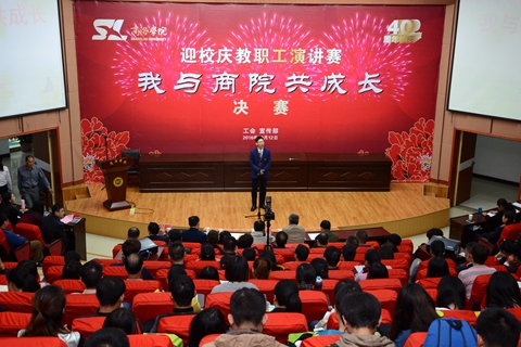 10月12日下午,由工會、宣傳部舉辦的“我與商院共成長”主題演講比賽進行了決賽。來自工會各分會的9名選手逐一登臺演講,最終文傳學(xué)院教師鐘思遠奪得一等獎。校黨委委員、紀委書記王思懷觀看了比賽并為獲獎選手頒獎。各二級學(xué)院、相關(guān)職能部門師生代表近500人觀摩了比賽。