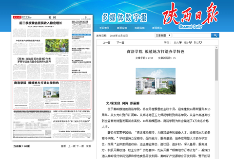 10月22日,《陜西日報》以《商洛學(xué)院 根植地方打造辦學(xué)特色》為題對我校辦學(xué)成就進行報道。文章從“聚焦現(xiàn)代中藥和綠色食品做文章,瞄準秦嶺礦產(chǎn)資源綜合利用下功夫,寫商洛 畫商洛 打造秦嶺最美名片”三個方面,回顧了我校建校40年、升本10年來,堅持立足商洛、面向地方、服務(wù)基層,凝練打造以秦嶺現(xiàn)代中藥資源和綠色食品開發(fā)利用,秦嶺礦產(chǎn)資源綜合開發(fā)利用,賈平凹研究、秦嶺畫派等地方文化傳承創(chuàng)新為代表的辦學(xué)特色,深入開展“根植地方行動計劃”的實踐和成果。