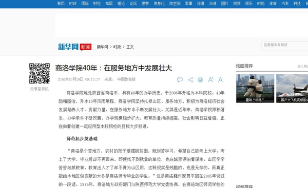 新華網——商洛學院40年:在服務地方中發(fā)展壯大