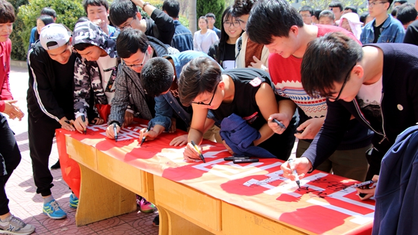 4月14日,數(shù)計(jì)學(xué)院團(tuán)總支在二號(hào)教學(xué)樓前舉辦“與書(shū)同行,墨香存華”活動(dòng)簽字儀式,2016級(jí)全體同學(xué)參加本次活動(dòng)。