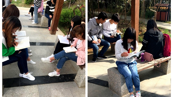 4月23日,人文社會(huì)科學(xué)學(xué)院2016級(jí)思想政治教育專(zhuān)業(yè)全體學(xué)生來(lái)到竹園進(jìn)行晨讀。