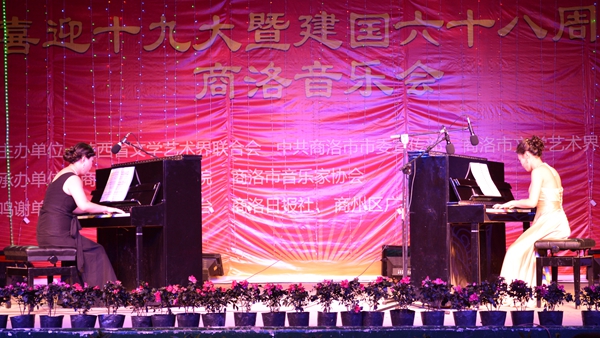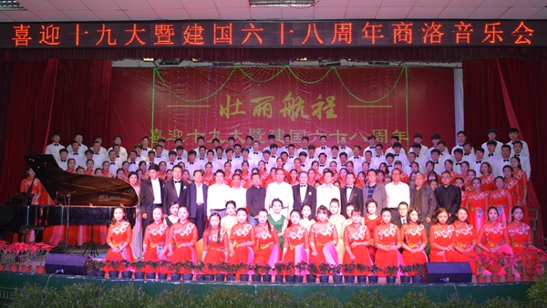 9月28日晚,由陜西省文學(xué)藝術(shù)界聯(lián)合會、中共商洛市委宣傳部、商洛市文學(xué)藝術(shù)界聯(lián)合會主辦,我校藝術(shù)學(xué)院、商洛市音樂家協(xié)會承辦的,以“壯麗航程”為主題的喜迎十九大暨建國68周年商洛音樂會在我校大學(xué)生活動中心上演。校領(lǐng)導(dǎo)龍治剛、王思懷、魏書堂、劉寶盈,省文聯(lián)組聯(lián)部副主任趙光遠(yuǎn)、趙長川,商洛市政協(xié)副秘書長楊平安、郭毅,商洛市委宣傳部副部長、市文明辦主任李丹峰,商洛市人大常委會教科文衛(wèi)工委主任郭菊賢,商洛日報(bào)社副總編輯趙有良,商洛市文廣新局副局長王勁,市文聯(lián)黨組書記王良、專職副主席李志華,商洛市音樂家協(xié)會主席林宏彥、市青年作協(xié)主席馮玲子同商洛市音樂屆人士、我校處級領(lǐng)導(dǎo)干部、師生代表一同觀看了晚會。