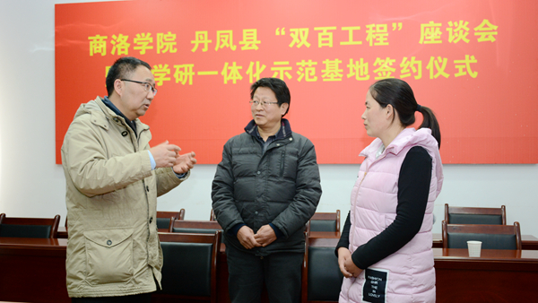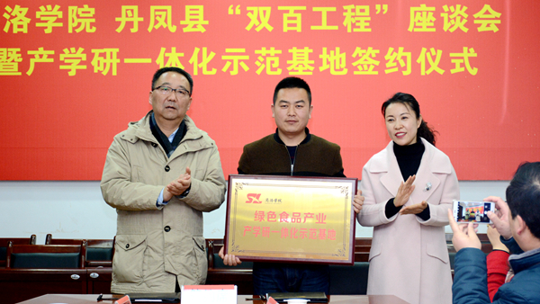 為了認真落實《中共陜西省委高教工委、陜西省教育廳、陜西省扶貧辦公室關于進一步推進“雙百工程”的通知》及全省2017年冬季脫貧攻堅工作會議精神,進一步深化校地合作,以產(chǎn)學研深度融合推動“雙百工程”落到實處,以實體項目助推丹鳳縣教育扶貧、產(chǎn)業(yè)扶貧,助力地方經(jīng)濟社會發(fā)展,我校于12月21日在丹鳳縣舉行“雙百工程”座談會暨“綠色食品產(chǎn)業(yè)產(chǎn)學研一體化”示范基地簽約儀式。