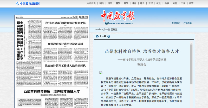 校長(zhǎng)范新會(huì)在《中國(guó)教育報(bào)》2018年8月3日第3版發(fā)表署名文章《凸顯本科教育特色 培養(yǎng)德才兼?zhèn)淙瞬拧搪鍖W(xué)院應(yīng)用型人才培養(yǎng)的探索實(shí)踐》,全文如下: