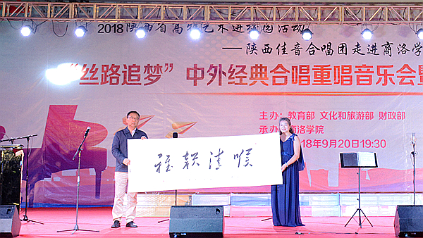 9月20日晚,由教育部、文化和旅游部、財政部主辦的2018年“高雅藝術(shù)進(jìn)校園”活動——陜西佳音合唱團(tuán)“絲路追夢”中外經(jīng)典合唱重唱專場音樂會暨我校迎新晚會在體育場隆重舉辦。黨委書記龍治剛,校長范新會,黨委副書記彭虎軍,陜西佳音合唱團(tuán)團(tuán)長、指揮西安電子科技大學(xué)周偉教授,合唱團(tuán)藝術(shù)總監(jiān)西安交通大學(xué)馬西平教授,合唱團(tuán)導(dǎo)聆西安音樂學(xué)院藝術(shù)處處長劉寶玲出席活動。