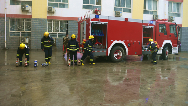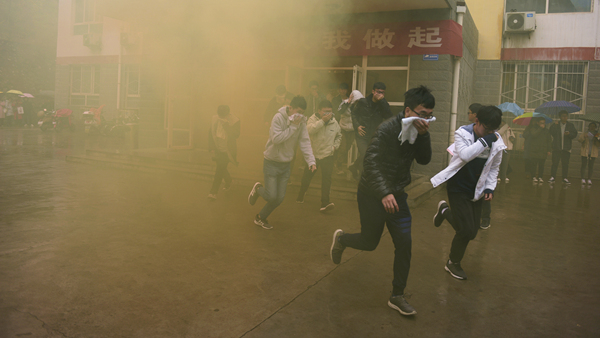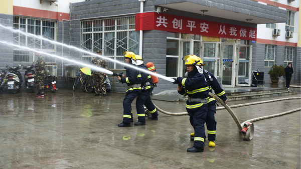 ?演練活動以我校一棟男生公寓樓起火為假設情景,共分為“逃生演練”“火場救援”和“滅火演示”三個部分。隨著指揮員一聲令下,模擬活動開始,“火災現(xiàn)場”頓時濃煙滾滾,火險警報響起,4名同學從“火災現(xiàn)場”逃離出來并大聲呼救。我校立刻啟動應急預案,輔導員、公寓管理員、保衛(wèi)人員迅速趕到現(xiàn)場,引導學生有序疏散,師生開展“逃生演練”進行自救,并在第一時間撥打119火警電話。消防員接到報警后立即出動,駕駛消防車火速趕來。同學們聽從引導,動作迅速,用濕毛巾捂住口鼻,彎腰靠右側從“失火”的樓道中有序撤離到指定安全區(qū)域。隨后,消防人員還模擬演練了“火場搜救被困學生”,醫(yī)護人員對“被搜救學生”模擬進行了“治療檢查”,消防支隊啟動消防車在火災現(xiàn)場進行“滅火演示”。至此,在各相關部門的密切合作和全體同學的共同配合下,本次火災應急疏散與救援演練活動圓滿完成。