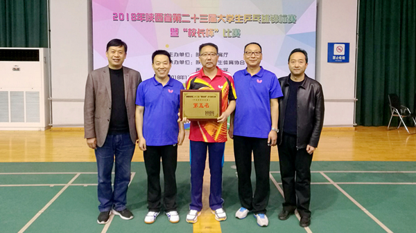 11月10日,由省教育廳主辦,省學(xué)生體育協(xié)會(huì)、西安交通大學(xué)承辦的2018年陜西省第二十三屆大學(xué)生乒乓球錦標(biāo)賽暨“校長(zhǎng)杯”比賽在西安交通大學(xué)落下帷幕。由我校黨委書記龍治剛、黨委副書記彭虎軍、副校長(zhǎng)劉寶盈、副校長(zhǎng)劉勇組成的代表隊(duì)獲得“校長(zhǎng)杯”乒乓球團(tuán)體賽第五名,是我校參加“校長(zhǎng)杯”乒乓球比賽以來的最好成績(jī)。