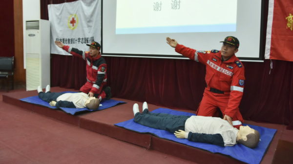 韓軼平介紹了曙光應(yīng)急救援協(xié)會的基本情況,著重介紹了曙光救援隊的成長歷程、發(fā)展規(guī)劃及成績。毛彩虹講解了心臟驟停的原因及生存鏈、除顫器的使用方法,并通過現(xiàn)場演練向同學(xué)們展示了心肺復(fù)蘇術(shù)中確認(rèn)自身環(huán)境是否安全、判斷傷員身體和生命反應(yīng)、啟動應(yīng)急反應(yīng)系統(tǒng)等6步法,并對心肺復(fù)蘇術(shù)的使用條件和標(biāo)準(zhǔn)做了詳細(xì)說明。董高平圍繞不同傷勢如何處置展開了細(xì)致講解,對手指斷傷、內(nèi)臟脫出傷等的處理方法和注意事項以及不同部位如何包扎進(jìn)行了重點指導(dǎo)和演示。