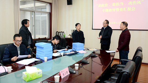 12月27日,由市直機關(guān)工委副書記王軍民帶領(lǐng)的市委第十督導(dǎo)組一行5人來我校督導(dǎo)檢查“講政治、敢擔(dān)當(dāng)、改作風(fēng)”專題教育工作情況,對我校基層黨組織標(biāo)準(zhǔn)化建設(shè)進行考核驗收。黨委副書記彭虎軍出席督導(dǎo)座談會,黨委各部門負(fù)責(zé)人參加了會議。