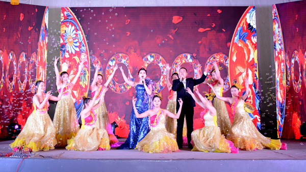 晚會(huì)結(jié)束后,校領(lǐng)導(dǎo)與全體演職人員合影留念。