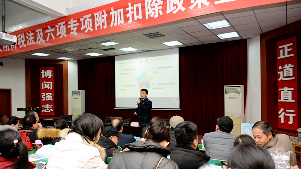 為落實新的個人所得稅法,讓政策惠及于民,1月3日,我校邀請商洛市稅務局專家來校舉辦新個人所得稅法及六項專項附加扣除政策宣講會,學校230多名教職工納稅人參加了宣講會。