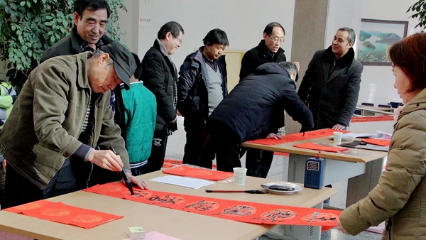 為弘揚(yáng)中華優(yōu)秀傳統(tǒng)文化,豐富校園文化生活,營(yíng)造歡樂(lè)喜慶的節(jié)日氛圍,1月17日,校工會(huì)聯(lián)合我校書(shū)法協(xié)會(huì),在圖書(shū)館一樓大廳舉辦了“迎新春 送春聯(lián)”活動(dòng)。