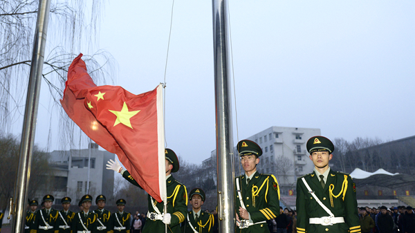 國旗臺前,建工學院1400余名師生整齊列隊,舉行隆重的升國旗儀式,飄揚的五星紅旗在晨光中熠熠生輝,引領師生闊步邁向追夢新征程。