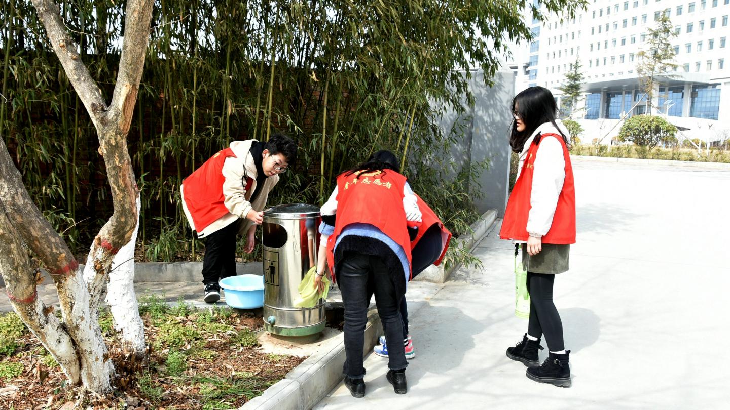 隨后,百余名志愿者參加了以“學(xué)習(xí)雷鋒精神,凈化美麗校園”為主題的校園美化活動(dòng)。志愿者們分為三組,有的擦拭閱報(bào)欄、垃圾桶,有的撿拾校園垃圾,大家各司其職、有條不紊,手拿抹布、水盆等清潔用具,在校園的各個(gè)角落忙碌,用實(shí)際行動(dòng)守護(hù)美麗、文明、衛(wèi)生的校園環(huán)境,用熱情和汗水為春日的校園增色添彩。